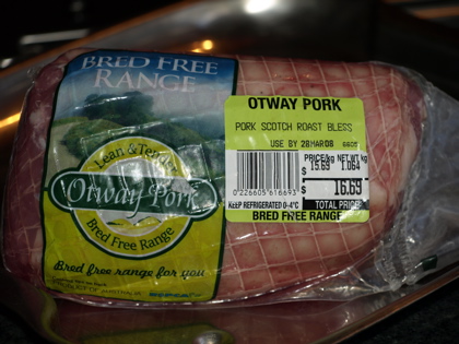 I found a 1kg Otway free range scotch pork roast reduced to $10. Happy days. Then I threw Lil Miss on the back of my bike and set off for the local farmer’s market. Nashi. Local. $3/kg.